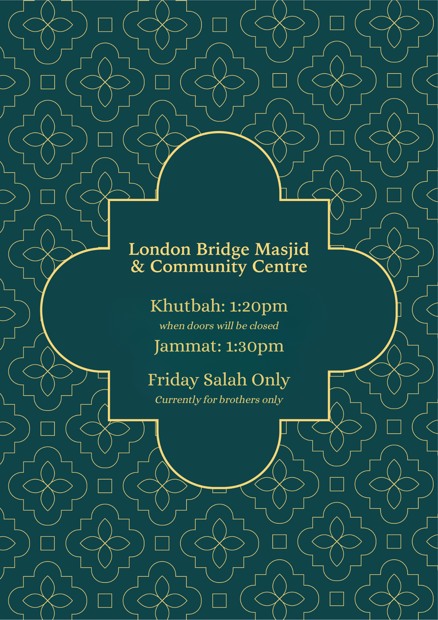 A group of local Muslims looking to establish prayer facilities for Friday prayers for those working and living in and around London Bridge, Borough and Bankside, the City of London, Southbank, the Northbank and the surrounding areas.